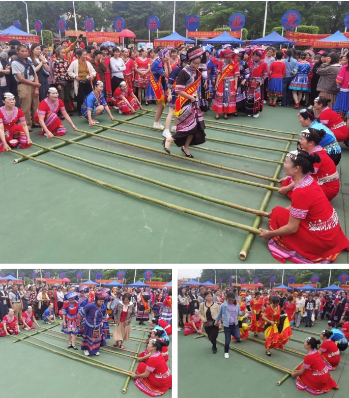 “跳竹竿”不僅是壯族人民的一種娛樂,也是壯族人民傳統(tǒng)文化的重要組成部分。它代表了壯族人民堅韌不拔的精神和勇敢、樂觀、向上的生活態(tài)度。圖為集團職工參與社區(qū)跳竹竿舞活動